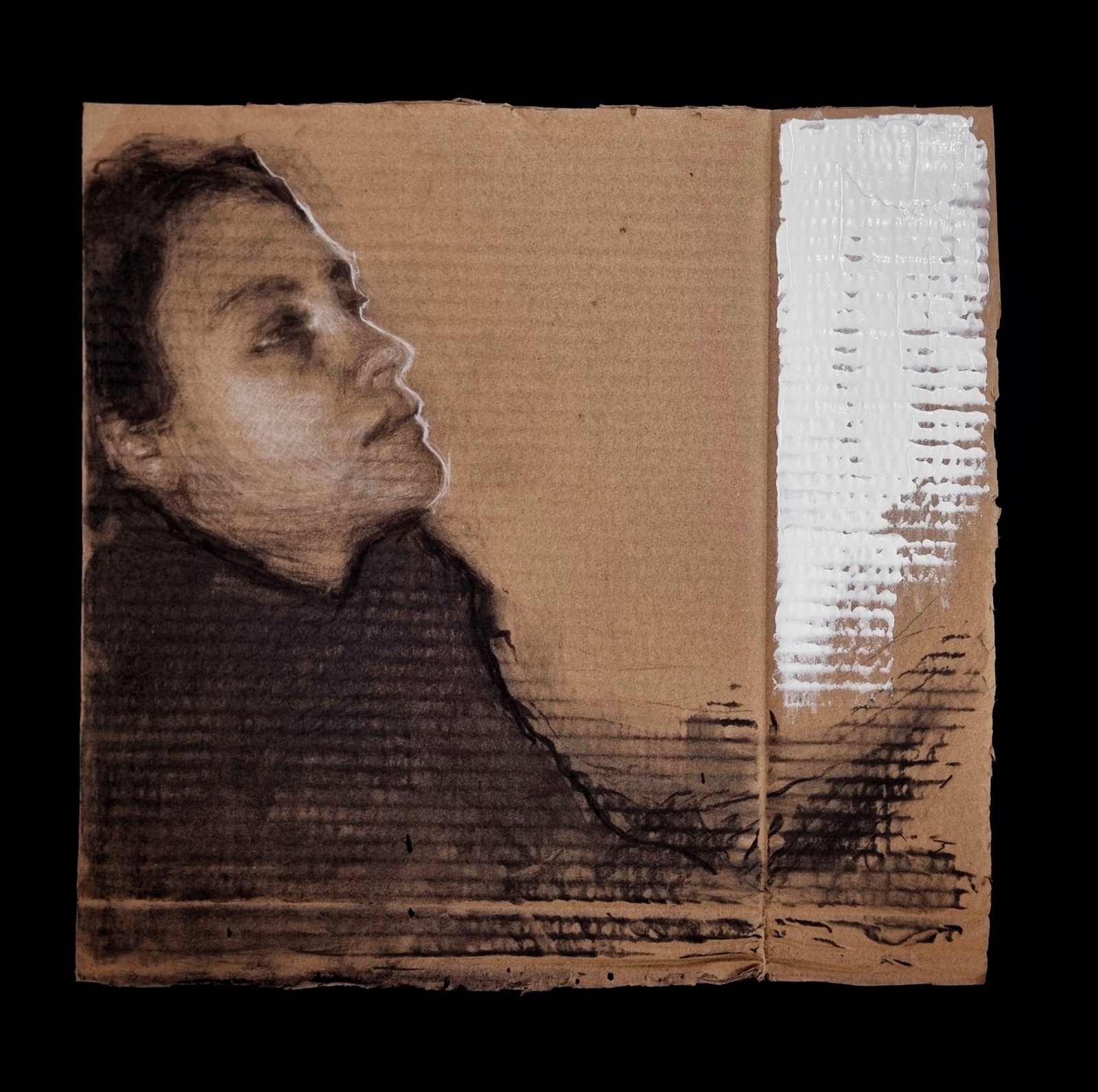 Carboncillo sobre cartón reutilizado.